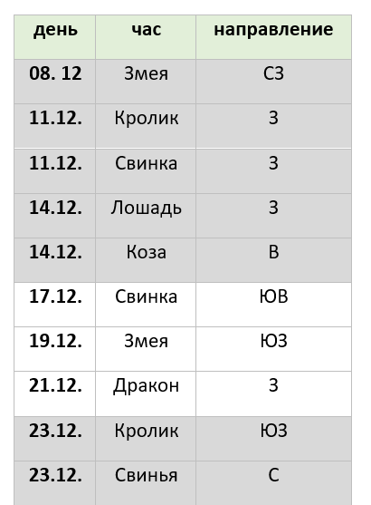 НЕБЛАГОПРИЯТНЫЕ НАПРАВЛЕНИЯ- отмечены серым цветом.